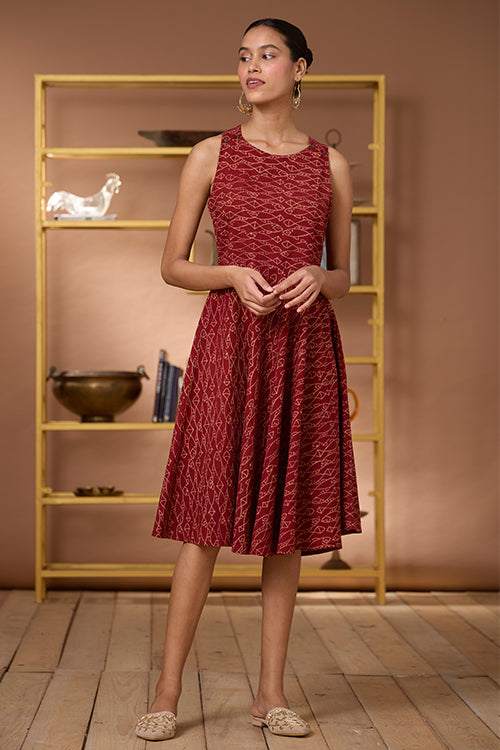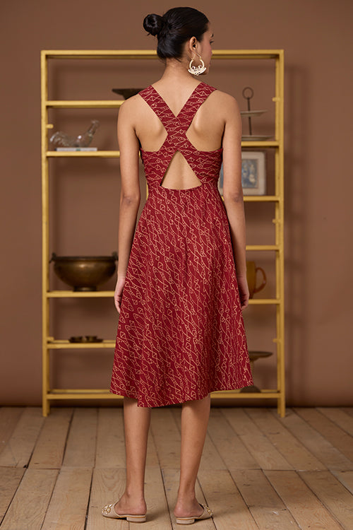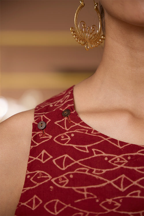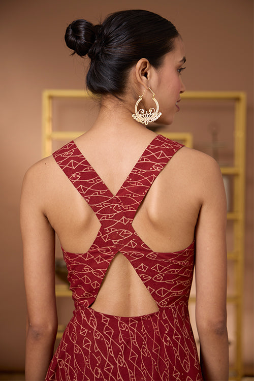 Going out for a stroll amidst greenery or be it for a date night, we can totally picture you in the gorgeous earthy tones of our “Terravita” dress. A flattering silhouette with a cross back, the vibrant red pure cotton fabric showcases the patient art of Ajrakh via hand-block printing. The dress comes double-layered at the front yoke and at the belt in the back. Soothing to the skin and utility kept in mind, it is equipped with an invisible zipper and 2 pockets on the sides. Adjust the length as you desire using the pair of three wooden buttons on the straps. Put a dress on for the days you want to make low efforts and with “Terravita”, you can’t help but look chic!