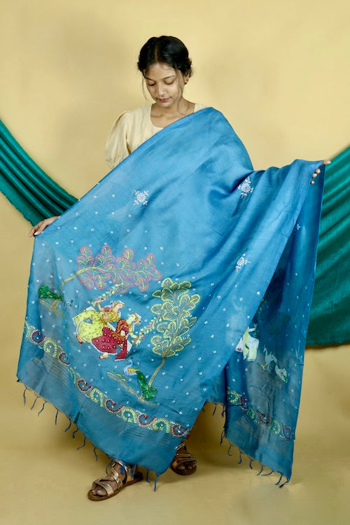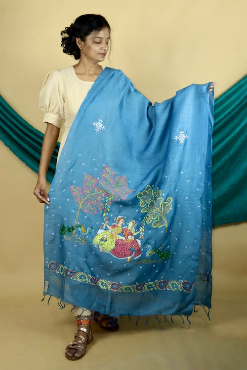 Diorama Designs Pattachitra "Sangini" Handpainted Munga Silk Dupatta
