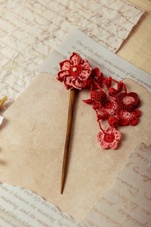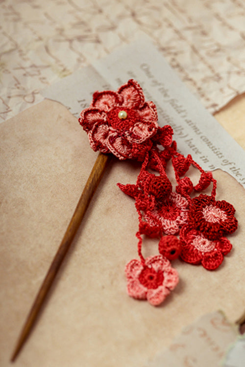 Material - Wooden Hair Stick, Wooden Beads & Viscose Thread