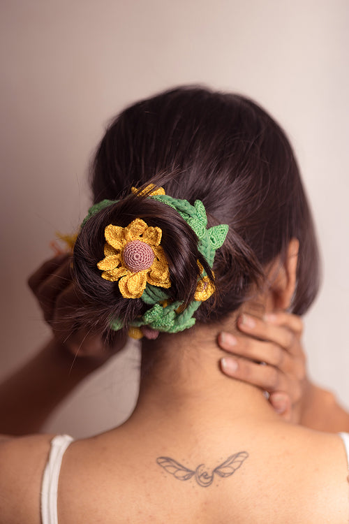 Material - Rubberband, Wooden Beads, Viscose Thread, Cotton Thread & Metalic Thread