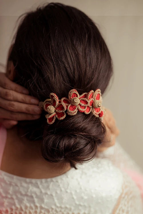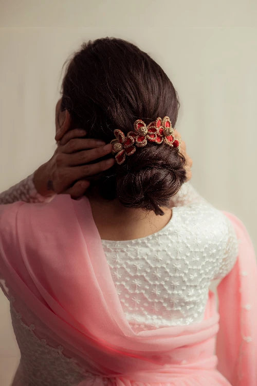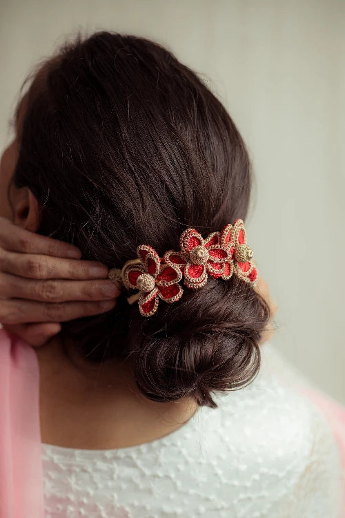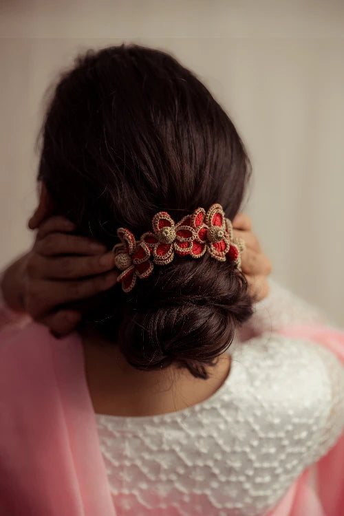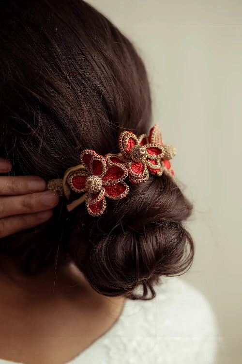 There’s a quiet romance in the way flowers have always found their place in our lives, tucked into braids, worn at celebrations, offered in prayer. Our gajra is a tribute to that enduring tradition, inspired by the floral adornments cherished by women. Every flower is shaped and strung by hand, crafted with the same care that goes into age-old rituals of beauty and belonging. You can wear it in your hair, wrap it around your neck or wrist, or drape it gently on a bun however, you choose, it carries with it a whisper of heritage, softness, and everyday poetry.