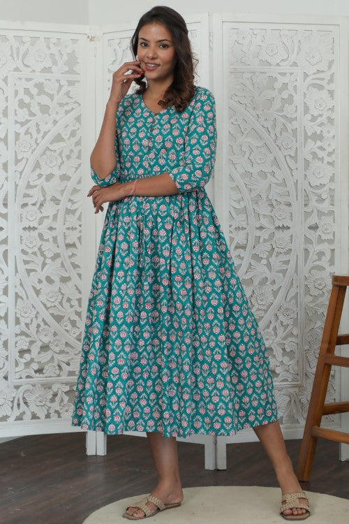 Sootisyahi ' Rayne ' Azofree Handblock Printed Pure Cotton Dress