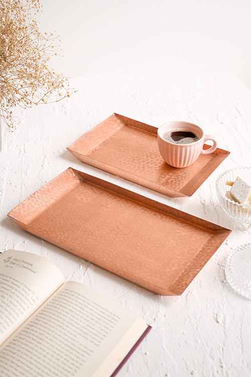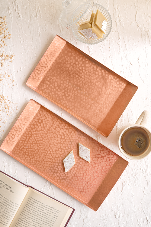 Wash & Care / Maintenance - Since copper is a pure metal, it oxidises on exposure to the atmosphere. The lacquer coat retards the oxidation and helps retain the shop-sheen of the copper product. In time, your lacquered copper/brass products may darken and begin to acquire a patina. To clean, wipe with a dry or soft moist cloth. Never wash your lacquered products.Serving dry foods on a lacquered copper product is safe, but always line the product with banana leaves or a doily or a muslin cloth while serving moist food. Never serve or store wet food in a copper product. You can however float tea-lights and flowers in your copper floaters, as water will not harm the lacquer finish. Change the water in your floater daily and wipe dry before the next use.
