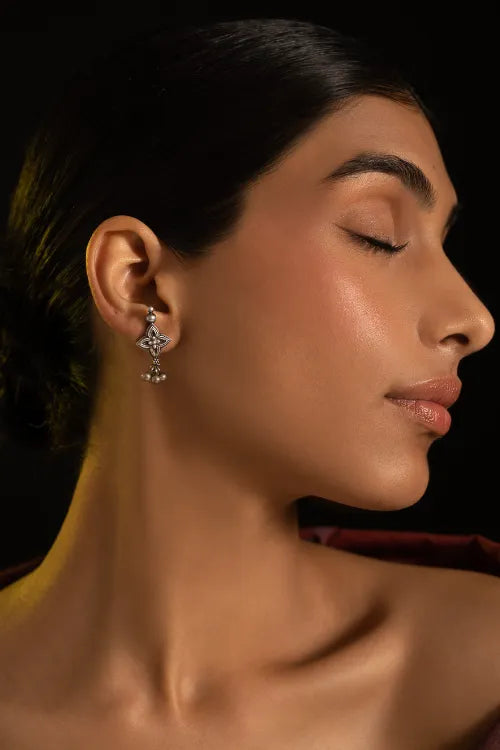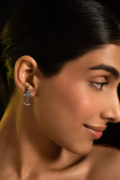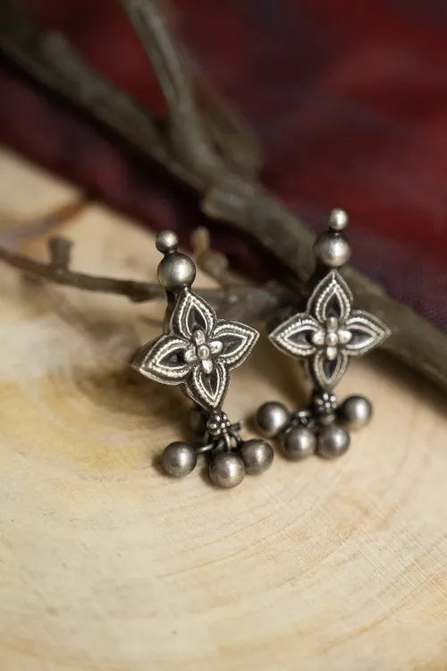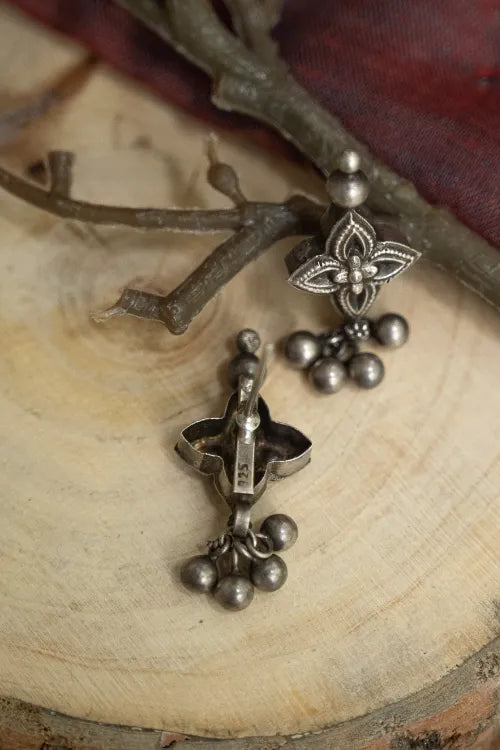 Pure Silver Traditional Maharashtrian Earrings - Tarangan Studs. A nod to celestial grace. A tiny star handcrafted in intricate silverwork. A collector’s piece made for heartfelt heirloom gifting or timeless celebration. This lovely piece has been beautifully crafted from pure Hallmark Silver and stands apart with its unique character. Handcrafted in Kolhapur, these designs have been inspired by traditional Maharashtrian designs. The process for the crafting of this beautiful Jewelry starts with the procurement of raw silver bricks, that are melted and alloyed only after a complete and thorough purity check is conducted on it. This alloy is then pressed into flat and thick wires and further refined to thinner wires depending on the requirements. The beads and small pieces of Jewelry are further crafted by skilled artisans in a precise and painstaking process.