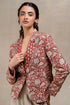 Don a tapestry of mesmerizing art in this silhouette crafted for the modern woman. A creative mishmash of two types of handblocked fabrics, you'll find a floral printed fabric in the front, back, and on both sleeves while Butti printed fabric on the bottom collar and the full inner lining. Switch from business boss to casual chic with the opening of wooden buttons on the sleeves and a single one in the front open. Slide your essentials into the 2 pockets on the sides. Wear with a white tee underneath, some beige trousers and glam it up with a statement necklace. Now you're all set to command attention- be it at a meeting or at a party!