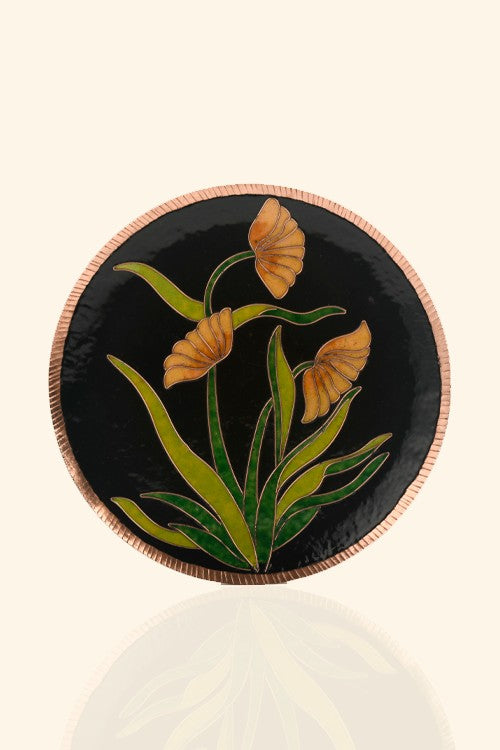 This collection of handmade copper enamel wallplates and tealights is inspired by the festival of Makar Sakranti. Makar in Sanskrit is Capricorn and Sankranti means change of Sun’s abode from one zodiac sign to another. Makar Sankranti marks the end of Dakshinayana or Sun’s southward journey and start of Uttarayana - start of the northward journey. It also marks the beginning of the harvest festival in India and is celebrated by flying kites, taking a dip in holy waters of Ganga or Yamuna and colour black is worn to signify the end of black period and welcoming auspicious and new time. The word Vasant translates to spring, the inspiration behind the wallplates were the blooming fields of flowers which represent new beginnings and remind us that it is never too late to start afresh.