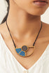 Whe Blue Geometrical Repurposed Fabric And Wood Pendant